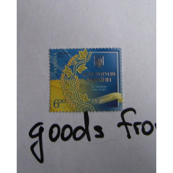 Here is a stamp 15 ANNIVERSARY of UKRAINE'S CONSTITUTION made in 2011