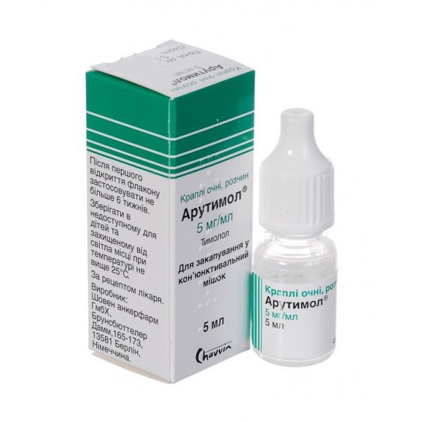 1 drop of Arutimol 0.25% solution in the affected eye (s) two times a day. If the result is unsatisfactory, you should apply the 0.5% solution.