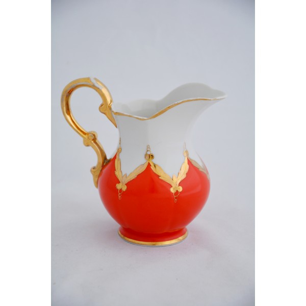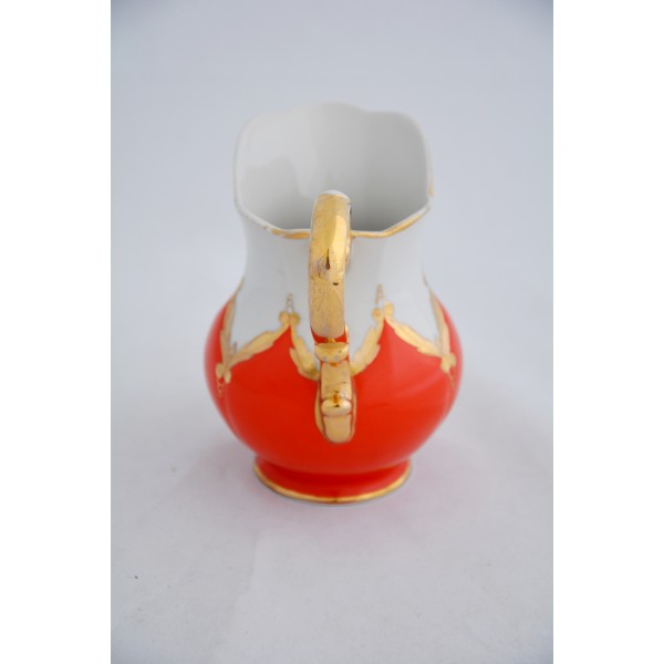 A vintage Ukrainian cream jug from the tea set Buton hand painted made in Soviet period. Made by Baranovskiy Porcelain factory which was founded in 1803 by painter Dmitriy Goch.