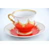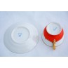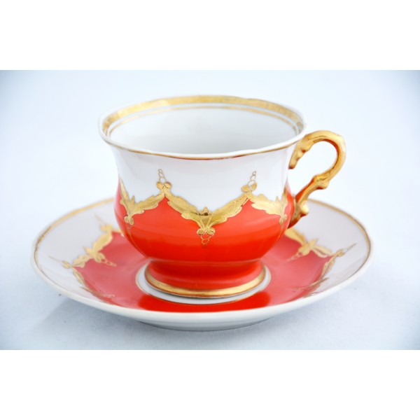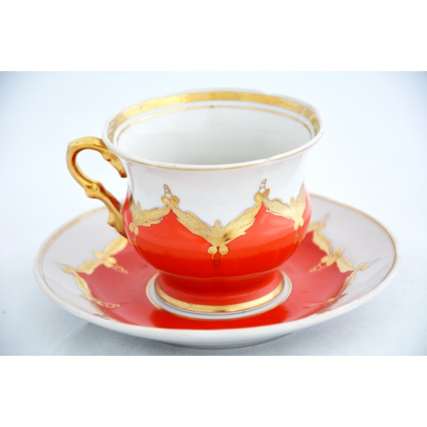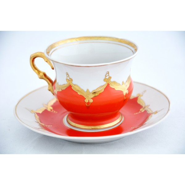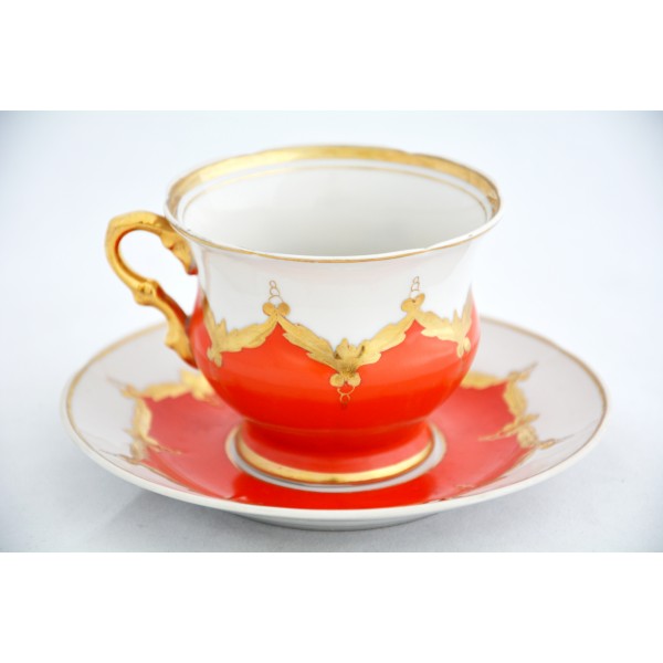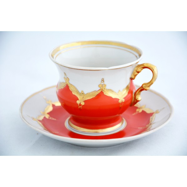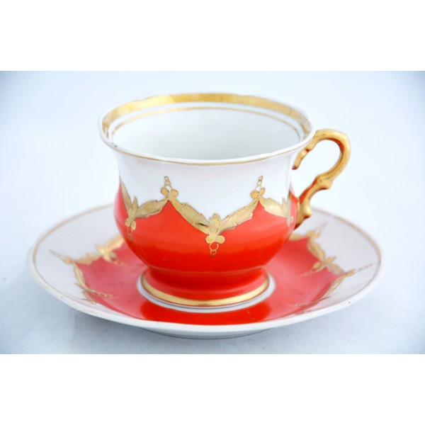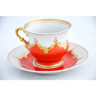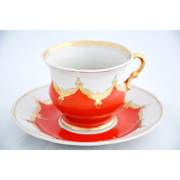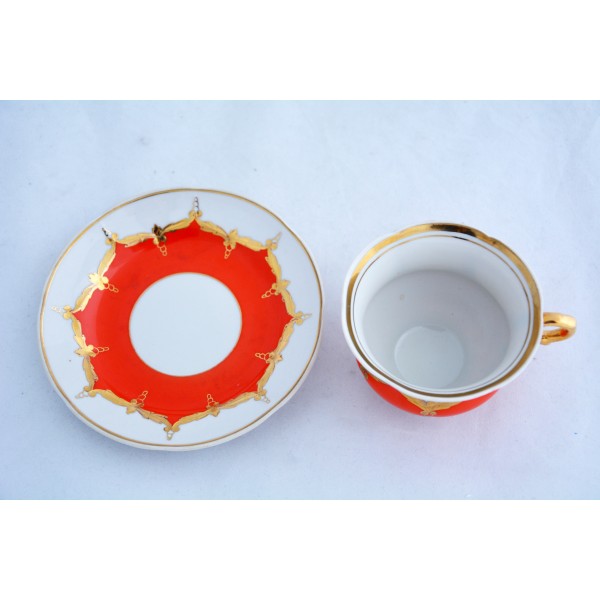 It is a vintage Ukrainian Cup and Sauser from the tea set Buton hand painted made in Soviet period in 1950-th. Made on Baranovsky Porcelain factory ( Baranovka ), which was founded in 1803 by painter Dmitriy Goch.