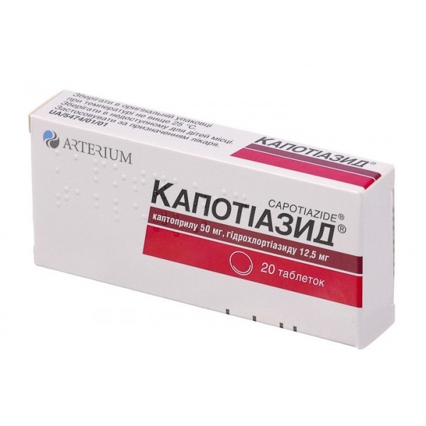 The initial dose is ½ tablet (25 mg of captopril and hydrochlorothiazide 6.25 mg) 1 every day. If necessary, strengthening hypotensive effect of Caputiasid dose can be increased to 1 tablet (50 mg captopril and 12.5 mg hydrochlorothiazide) daily. Expected full therapeutic effect occurs 6-8 weeks after starting treatment.
