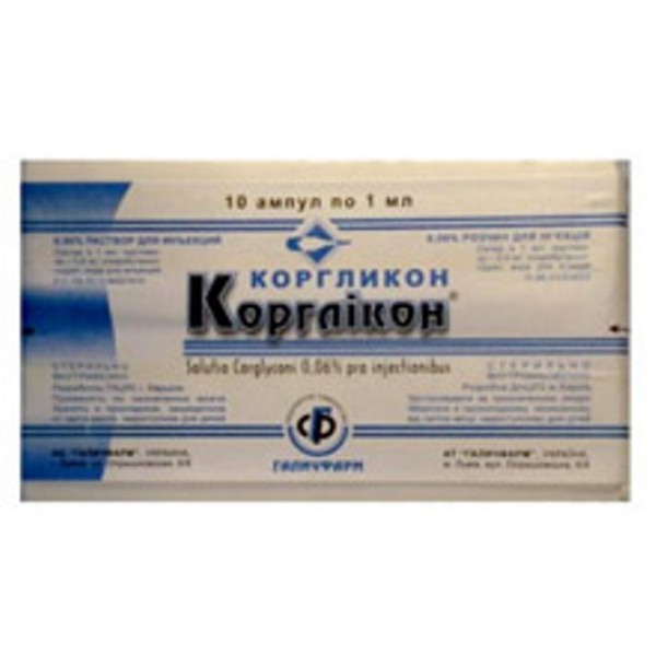 Corglycon is introduced intravenously, slowly for 5-6 minutes (preparation breed only 10-20 ml isotonic sodium chloride solution) 1-2 times a day.