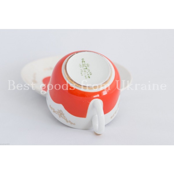 It is a vintage porcelain Cup + Saucer from tea set from USSR, made on Druzhkovsky porcelain factory (Druzhkovka) in Soviet period.