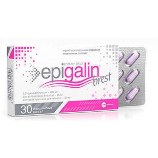 Fortifying and tonic capsules for men and women Epigalin Brest is an additional source of 3,3-diindolylmethane (dimeric form of indole-3-carbinol), epigallocatechin-3-gallate, as well as a complex of biologically active substances contained in the extract of common rod (Vitex agnus -castus L.), to normalize the functional state of the mammary glands in women with fibrocystic mastopathy, cyclic mastalgia, premenstrual syndrome, as well as to prevent the development of hyperplastic processes in the mammary glands and reproductive organs, requiring a decrease in the level of prolactin, normalization of estrogen metabolism, inhibition pathological growth of cells and new vessels.