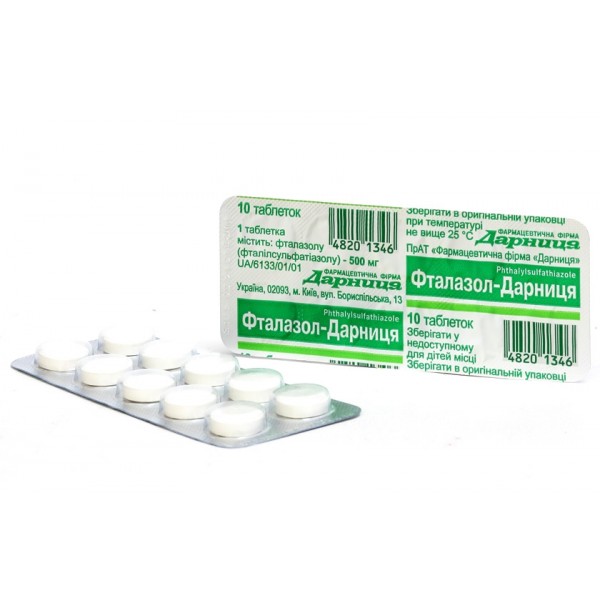 Ftalazol belongs to a group of drugs called sulphonamides. The drug is a broad spectrum antimicrobial that can treat different types of infections including intestinal. The mechanism of action depends is based on competitive antagonism with para-aminobenzoic acid and inhibition of dihydroprosynthetaze activity, that in turn leads to impaired synthesis of dihydrofolic acid and as a result its active metabolite that is necessary for the synthesis of purine and pyrimidine.
