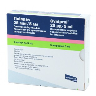 Acute tocolysis. Ginipral 10 micrograms (one ampoule 2 ml), diluted in 10 ml of a 0.9% solution of sodium chloride or 5% D-glucose p, administered slowly over 5-10 minutes. If necessary, continue administration by i / v infusion at a rate of 0.3 g / min.