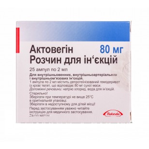Actovegin injections solution 25 ampoules 2ml 80mg Hemoderivative Актовегин