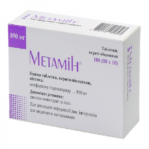 Metamin 100 tablets 850mg Metformin hydrochloride Diabetes Метамин 16