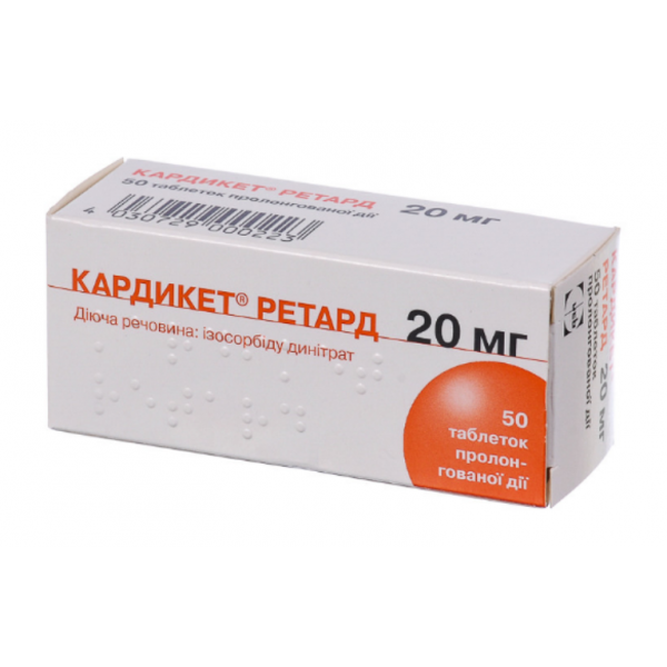 Cardiket retard 20: 1 tablet 2 times a day. The second / next dose should be taken no earlier than 6-8 hours after the first. With increased demand for nitropreparatov daily dose can be increased to 1 tablet 3 times daily with 6 hours intervals.