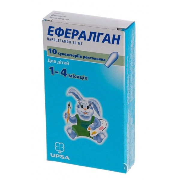 Efferalgan - for Children 1-4 months - 10 rectal supp 80mg Paracetamol Эффералган Pain Relief 20