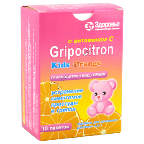 Gripocitron Kids Orange for Children powder for oral solution 10 packs 4g Paracetamol Гриппоцитрон Кидс Flu & ARVI