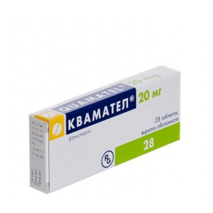 Quamatel, a competitive histamine H-receptor antagonist, is used to treat gastrointestinal disorders such as gastric or duodenal ulcer, gastroesophageal reflux disease, and pathological hypersecretory conditions. Quamatel inhibits many of the isoenzymes of the hepatic CYP450 enzyme system. Other actions of Quamatel include an increase in gastric bacterial flora such as nitrate-reducing organisms.