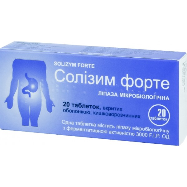 Solizym Forte 3000 FIP U 20 tablets Microbial origin lipase Солизим
