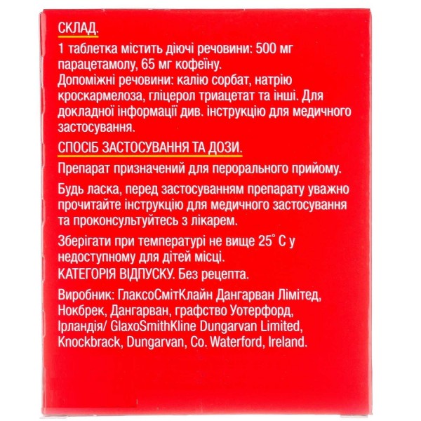 Do not take more than 8 tablets (4000 mg paracetamol / 520 mg caffeine) for 24 hours.