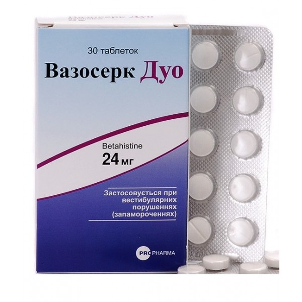 Vasorec Duo 30 tablets 24mg Вазосерк Дуо Meniere disease & syndrome