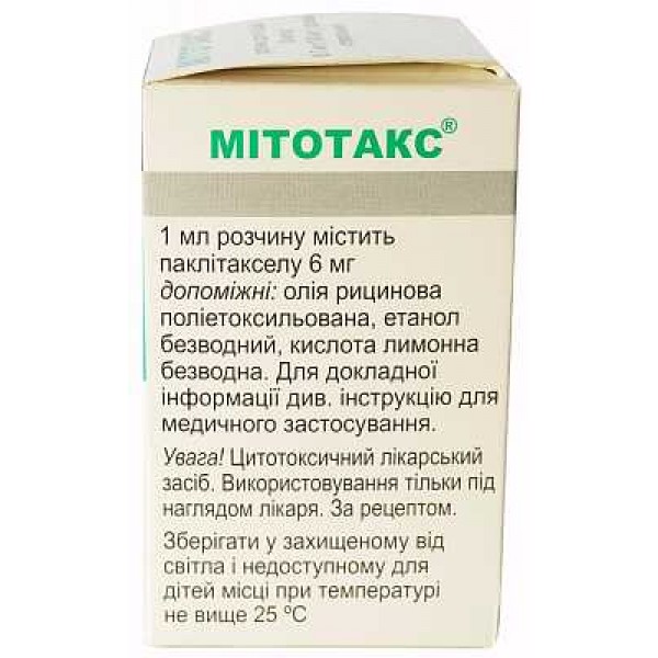 - Mitotax solution for injection 16.7 ml 100 mg paclitaxel Cancer Митотакс