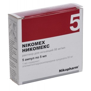 Nikomex ia administered intramuscularly or intravenously. Doses picked individually. With the introduction of the drug infusion method be diluted in physiological sodium chloride solution (200 ml). Begin treatment of adults with doses of 50
