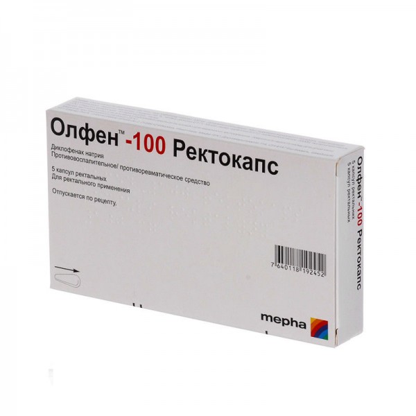 OLFEN 100 Retocaps 5 rectal capsules 100mg DICLOFENACUM Олфен