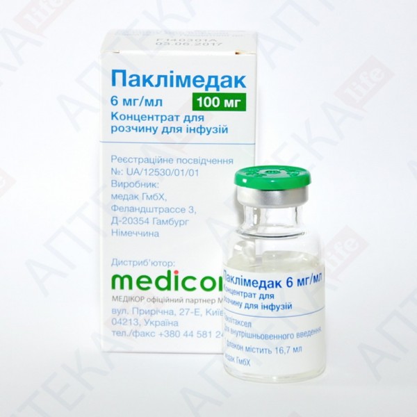 Paclimedac concetrate for infusion 6 mg/ml 16.7 ml 100 mg paclitaxel Cancer Паклимедак