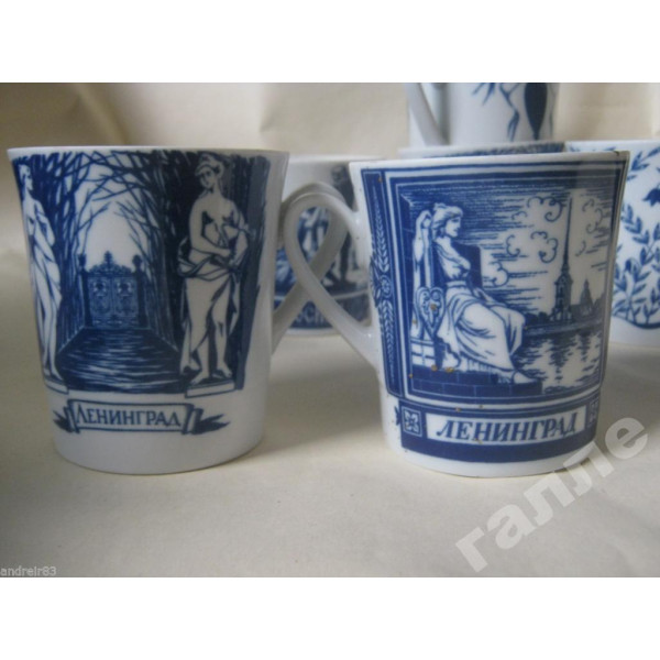 It is a vintage porcelain Set of tea cups "Leningrad. Summer Garden". Made in USSR on Lomonosov porcelain Factory in Soviet period.