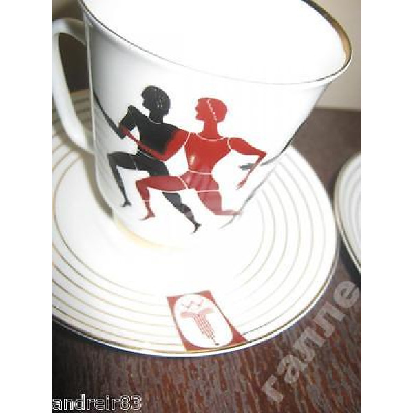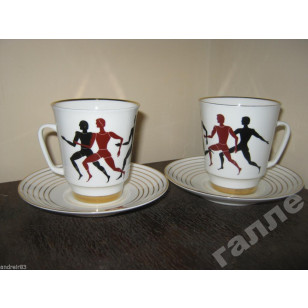 It is a vintage porcelain Cup+Saucer coffee pairs "Olimpic games" from USSR, made on Lomonosov porcelain Factory in Soviet period.