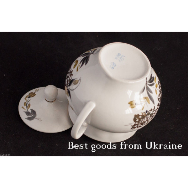 It is a vintage porcelain Sugar-bowl from USSR, made on Baranovka Porcelain Factory in Soviet period.