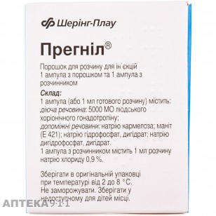 Support the luteal phase - 2-3 consecutive injections pregna dose of 1000-3000 IU each for 9 days after ovulation or embryo transfer (for example, on the 3rd, 6th and 9th day after ovulation stimulated).