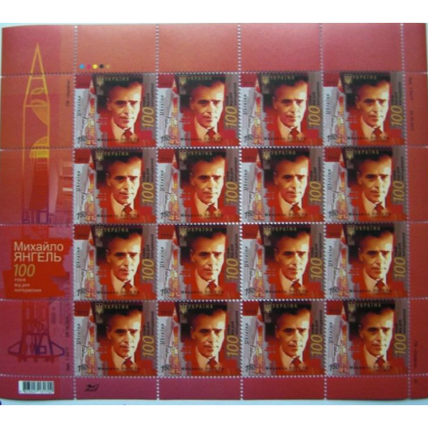 - Stamp Ukraine block MYKHAILO YANGEL' 100 ANN 16V stamps 2011 MNH Янгель