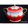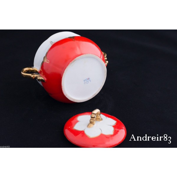It is a vintage Ukrainian Sugar Bowl from the tea set Buton hand painted made in Soviet period (50th years). Made by Baranovskiy Porcelain factory which was founded in 1803 by painter Dmitriy Goch.