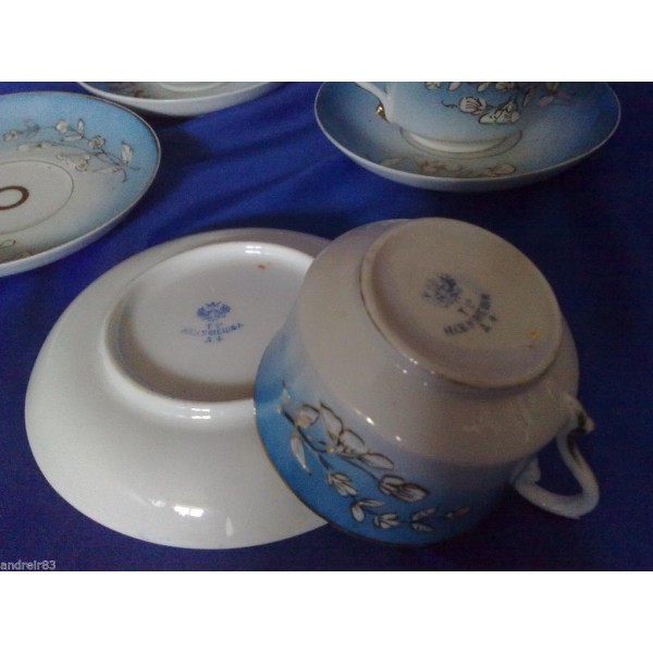 - Tea pair Cup Saucer Vintage porcelain Kuznetsov 19 th cent Budyanskiy factory PD22