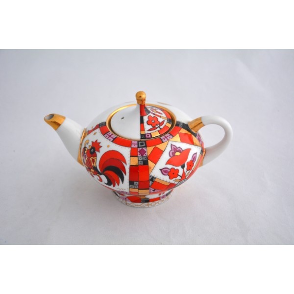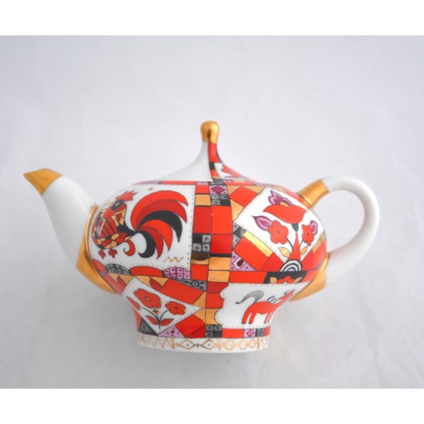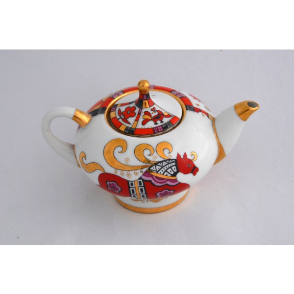 It is a vintage porcelain Teapot "Red Horse" made on Lomonosov porcelain factory in USSR (Soviet period). It was bought in 1960s.