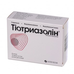 Myocardial infarction and unstable angina - Tiotryazolin is administered by slow intravenous 4 ml of 25 mg / ml (100 mg) at 2 ml / min or intravenously at a speed of 20-30 drops per minute (4 ml of 25 mg / ml diluted in 150-250 mL of 0.9% sodium chloride) or injected intramuscularly 4 ml of 25 mg / ml (100 mg) 2-3 times a day. The course of treatment - 14 days.