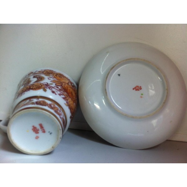 - Vintage porcelain Tea Cup Saucer pair USSR Soviet Lomonosov LFZ ЛФЗ Victory PD19