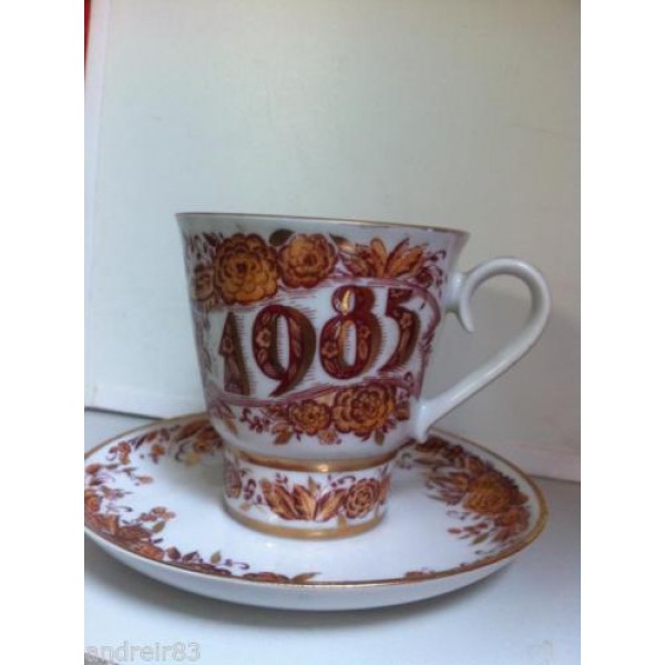 You are bidding on a vintage porcelain Tea Cup&Sauser pair "40s years of Victory"- USSR, made on Lomonosov porcelain factory (LFZ) in Soviet period.