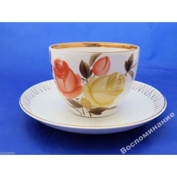 It is a vintage porcelain Tea set "Roses" made on Lomonosov porcelain factory (LFZ) in Soviet period.