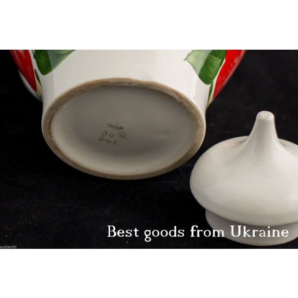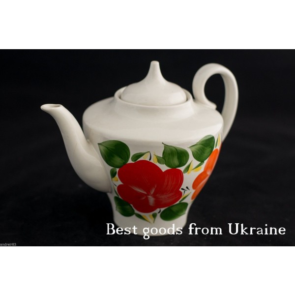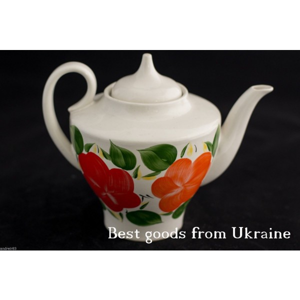 Teapot has height 7,87" inches (20 cm) and width 9,84" inches (25 cm) from the end of the nose till the end of the handle.